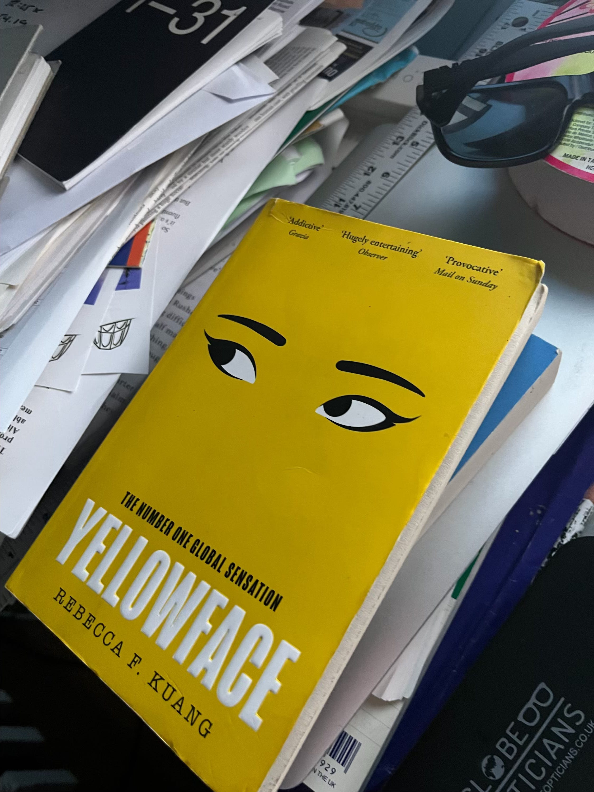 So. I liked this book quite a lot; read it in a sitting. Though rather like watching too many episodes of The Bear at one time, as well as the page-turner thriller complete with ghosts, it’s also a really tough slog through the cruel realities of American culture – culture increasingly without an NEA grant or a liberal press – right now. For example, in the first sentence of the acknowledgments, author Rebecca F. Kuang writes: ‘Yellowface is, in large part, a horror story about loneliness in a fiercely competitive industry.’