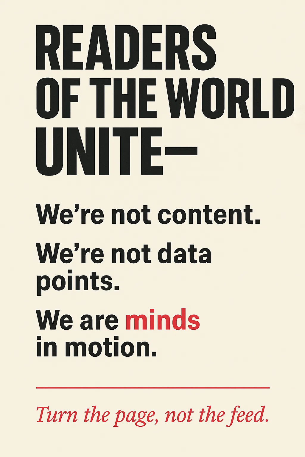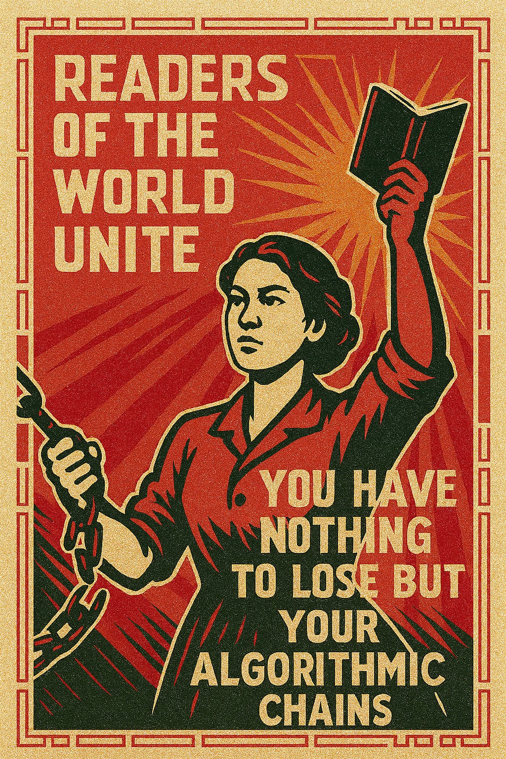 ‘“Content” flattens. It treats all forms of expression as interchangeable units in an economy of attention. A novel, a tweet, a podcast clip, a meme: each competes for engagement, clicks, shares. Literature, by contrast, invites depth, ambiguity, and transformation. It resists being consumed quickly or algorithmically. It’s a space of delay and density—a kind of private, strange, resistant time.
