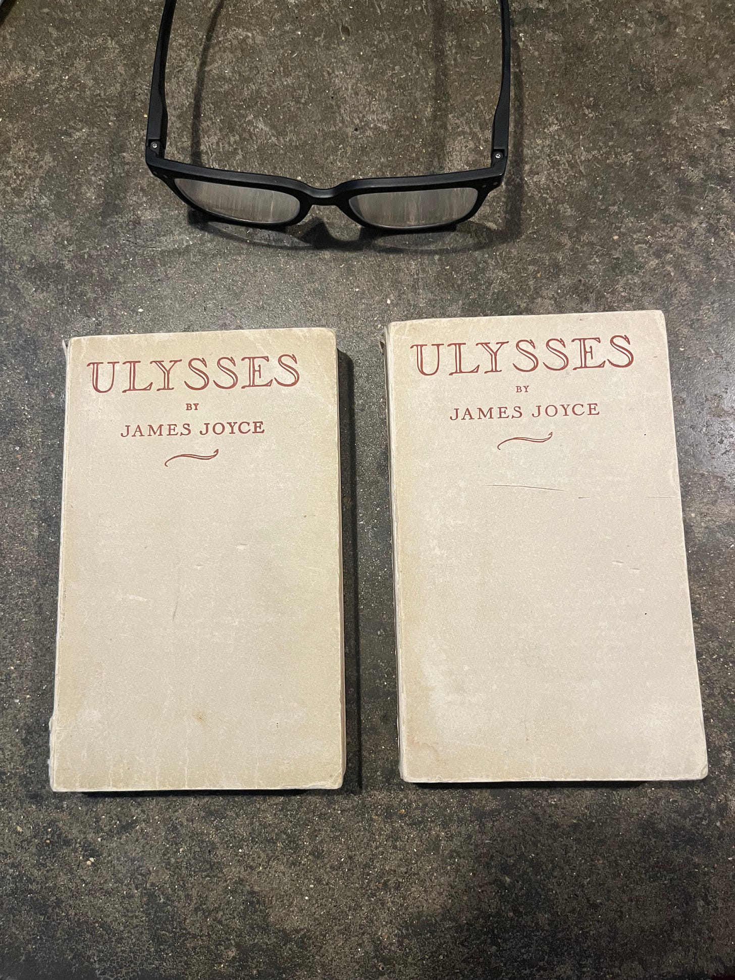“What a beautiful edition of Ulysses! The Odyssey Press two-volume set is a classic and deeply evocative one to read from—just the kind of physical object that resonates with the sprawling, bodily, and encyclopaedic nature of the book itself. The cream covers, the red title font, the simplicity—there’s a humility to the design that belies the audacity of the text within. And the name of the press? A perfect omen.